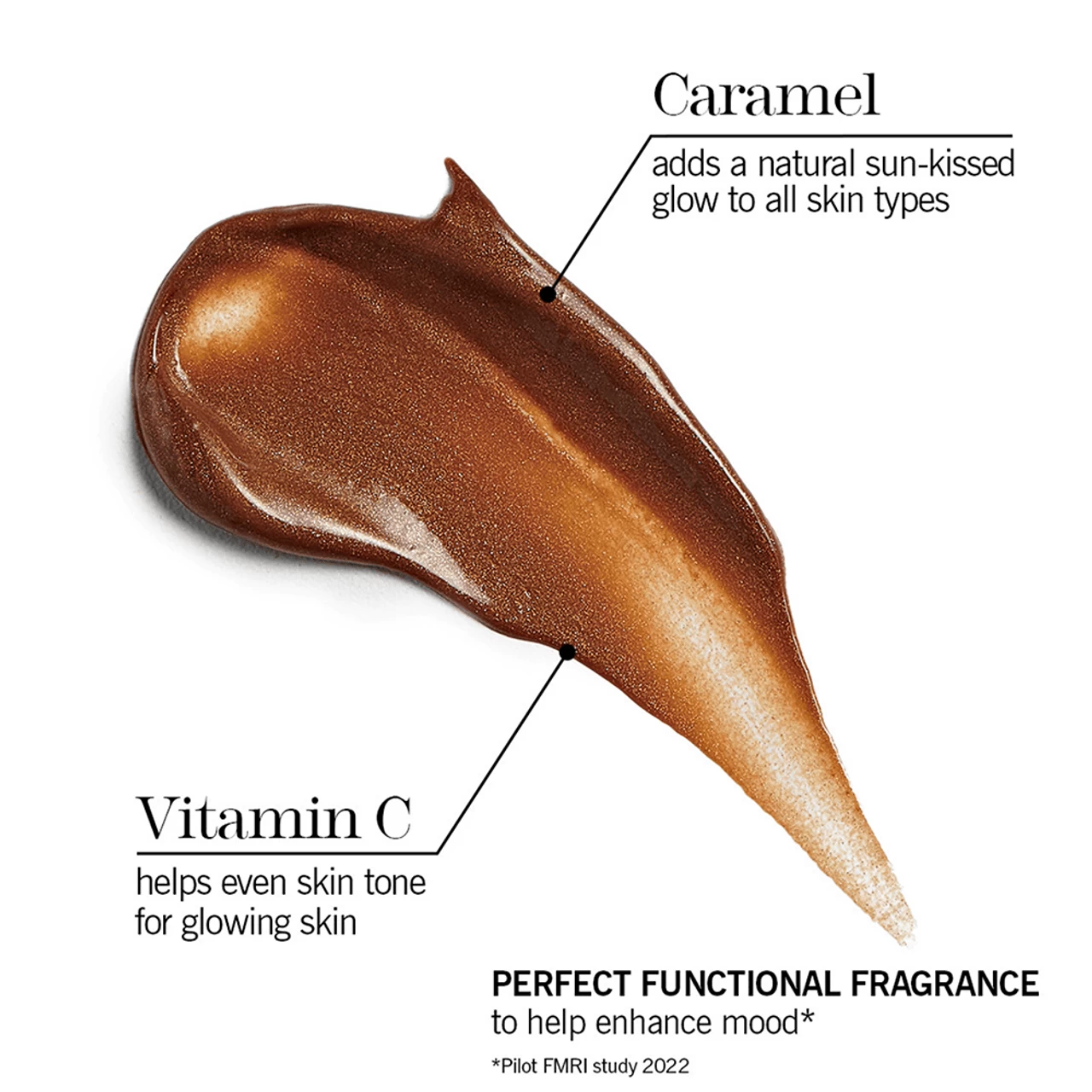 Aqua, Dicaprylyl Carbonate, Caprylic/Capric Triglyceride, Butylene Glycol, Coconut Alkanes, Glycerin, Sodium Ascorbyl Phosphate, Disodium Lauriminodipropionate Tocopheryl Phosphates, Sorbitan Olivate, Laureth-4, Cetearyl Olivate, Caramel, Cetyl Palmitate, Butyrspermum Parkii (Shea) Butter, Phenoxyethanol, Sorbitan Palmitate, Hydrogenated Macadamia Seed Oil, Mica, Arnica Montana Flower Extract, Allantoin, Benzyl Alcohol, Algae Extract, Coco-Caprylate/Caprate, Sodium Stearoyl Glutamate, Macrocystis Pyrifera, Parfum, Xanthan Gum, Carbomer, Ethylhexylglycerin, Limonene, Dehydroacetic Acid, Pogostemon Cablin (Patchouli) Oil, CitrusAaurantium Dulcis (Orange) Peel Oil, Pelargonium Graveolens (Geranium) Oil, Amyris Balsamifera Wood (Amyris) Oil, Cinnamomum Camphora (Ho Wood) Oil, Boswellia Carterii (Frankincence) Resin Oil, Cocos Nucifera (Coconut) Oil, Rosa Damascena (Rose) Flower Absolute, Vanilla Planifolia (Vanilla) Absolute, Evernia Prunastri Absolute, Eugenia Caryophyllus (Clove) Bud Oil, Styrax Benzoin Absolute, Hibiscus Abelmoschus (Musk Mallow) Seed Oil, Linalool, Isopropyl Titanium Triisostearate, Citronellol, Caprylyl Glycol, Benzoic Acid, Evernia Prunastri Extract, Chlorphenesin, Hexylene Glycol, Geraniol, Eugenol, Potassium Sorbate, CI 77491
