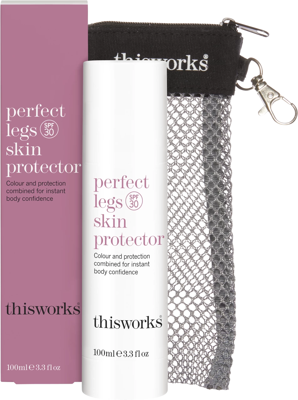 Protect legs from sun damage and perfect their appearance with this tinted serum from This Works. Perfect Legs Skin Protector contains SPF30 to shield the skin from harmful sun damage, plus a hint of natural caramel colour to tint legs for a perfect golden glow.